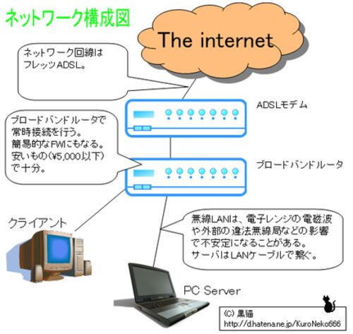 昨日の続き。 いっち〜さんの職種から考えると、ちょっと説明を砕きすぎかもしれない。 他に参考にしていただけることも考慮して記載する。 物理的経路 Webサーバを公開するなら、その前にネットワークの構成を考えておく。 これは、バイクで走る前にルート…