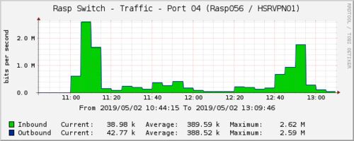 自宅に VPN 接続して、しばらく RDP でいろいろ弄っていた。 これは固定回線だから気にならないけど、テザリングを利用した場合にどれくらいになるのか…その目安を知っておきたいとおもって調べてみた。まずは、自宅のトラフィックを参照してみる。VPN 用の …